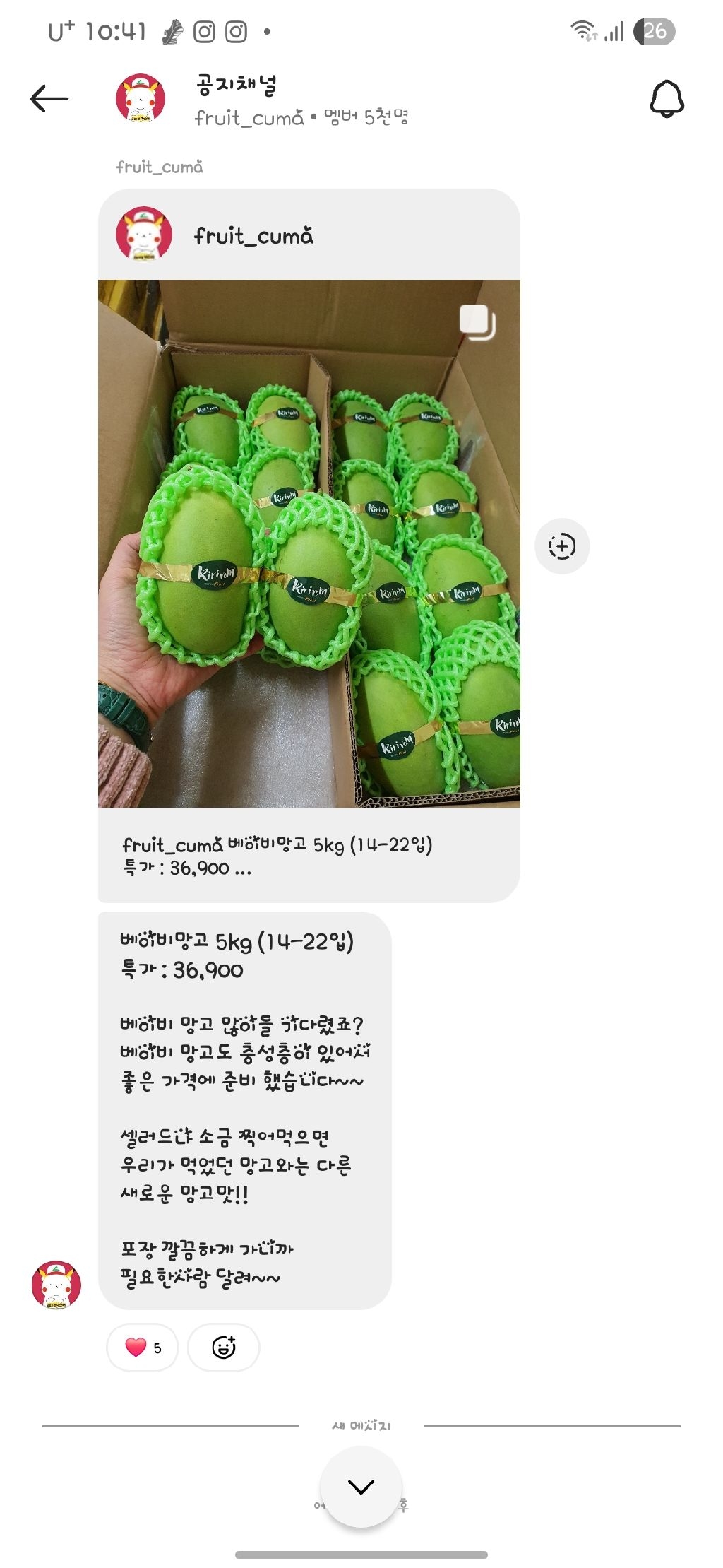 망고가 아삭새콤달콤 한게 맛있어요 크기가 조큼 작아서 갯수가 많아졌네요