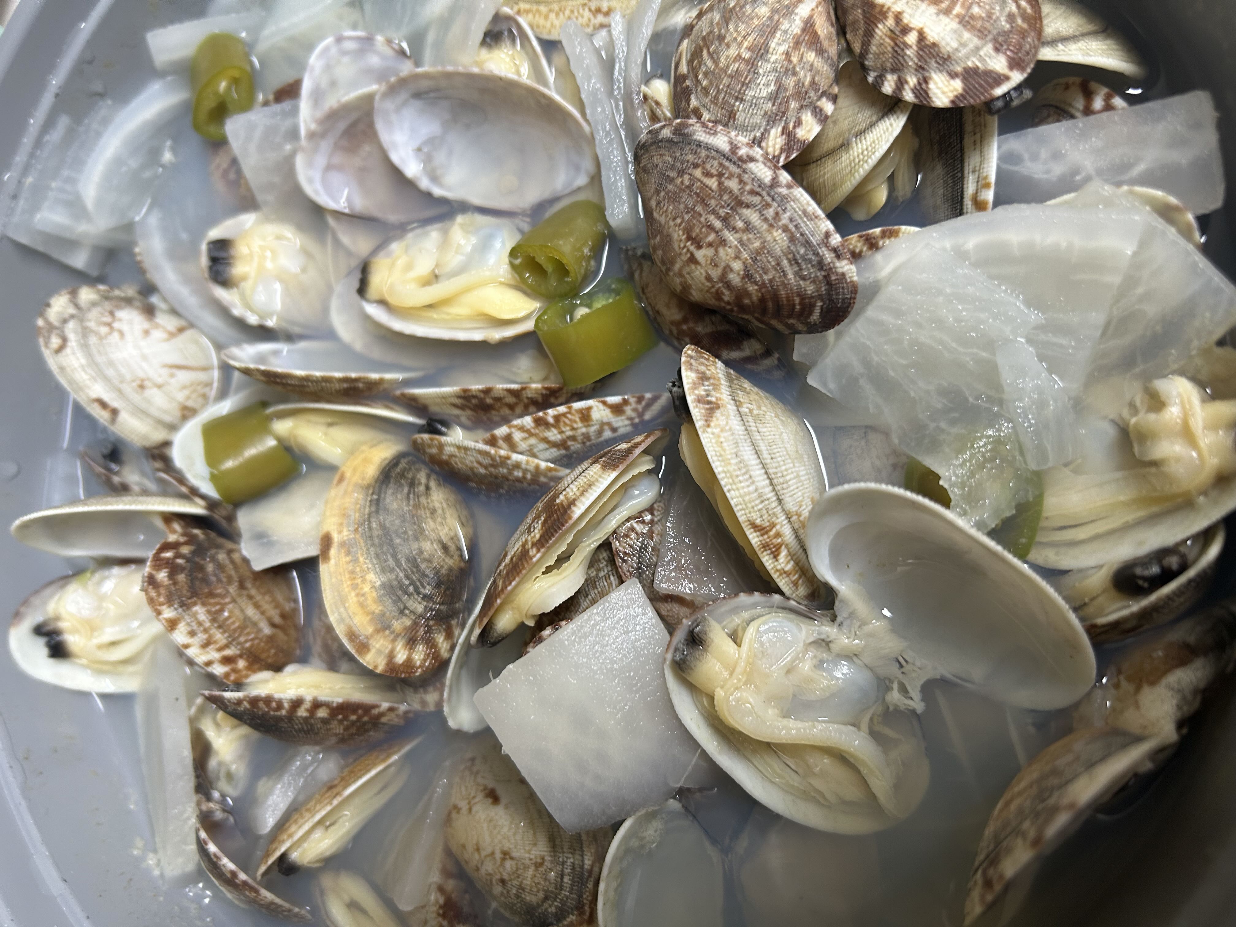 금요일에 받았고 냉장고에 그대로 넣어놨다가 그 다음주 화요일에 요리했어요. 죽었을거라 생각했는데 씻을 때 보니 전부 입을 꽉 다물어서 깜짝 놀랐습니다..! 얼마나 신선했으면..ㅠ 칼국수에 넣어서 1kg 순삭했어요~ㅎ 완전 맛도리~~