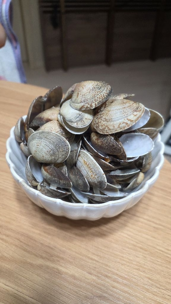바지락 깨끗하더라구요. 혹시 몰라 한 번 더 해감 했습니다. 싱싱하게 살아서 도착..바지락 칼국수 맛나게 해 먹었습니다.