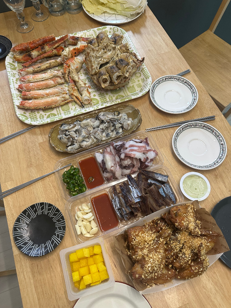 친구네 식구 불러서 이브에 파티했어요~다들 맛있게 먹었어요