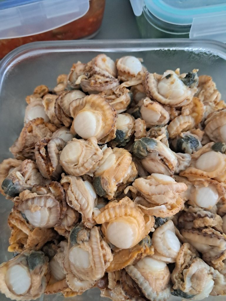 껍질에 얹혀 사는 작은굴이 안붙어있어서 소소한 재미는 없었지만 가리비가 싱싱하고 맛있어요