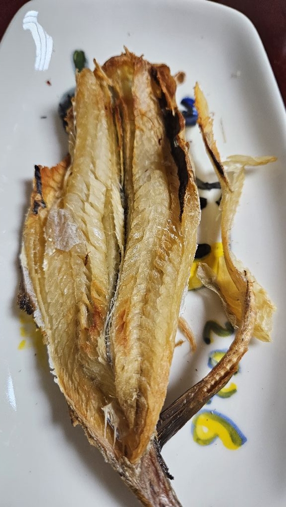 정말 시키는데로 구워사 반으로 가르니 뼈가 쏘옥~~ 살밥도 많아서 먹는맛도 좋고 간식으로 딱이에여 ㅎㅎ